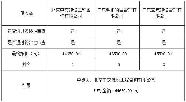 1:中標(biāo)供應(yīng)商名稱北京中交建設(shè)工程咨詢有限公司 法人代表 陳榮輝 地址北京市朝陽區(qū)北苑路170號凱旋城3號樓4層0501