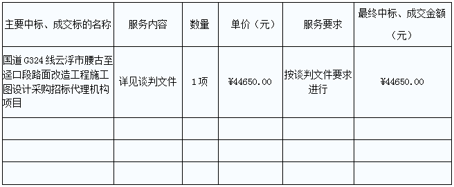 G324線云浮市腰古至逕口段路面改造工程施工圖設(shè)計(jì)采購招標(biāo)代理機(jī)構(gòu)項(xiàng)目的中標(biāo)、成交公告